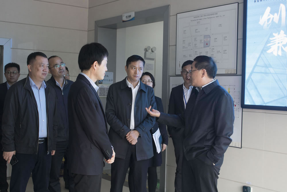 2021年4月25日下午,安徽省經信廳黨組書記、廳長牛弩韜同志帶隊,省經信廳中小企業(yè)局局長羅文杉、 省經信廳汽車工業(yè)處處長馬翠兵、省經信廳政策研究室副主任盛舉、省經信廳辦公室副主任高源,以及包河區(qū)政府區(qū)長陳東、包河區(qū)政府副區(qū)長朱海舟、包河區(qū)政府辦主任王學輝、包河區(qū)經信局黨組書記張瑞金、包河區(qū)經信局局長霍錦秀、包河區(qū)經信局副局長許斌等各級領導陪同一行蒞臨華益藥業(yè)進行調研走訪,并展開座談。華益藥業(yè)科技(安徽)有限公司董事長高煜、董事樊列、研發(fā)總監(jiān)操鋮、生產總監(jiān)賈毅柏、財務總監(jiān)秦秀賓等領導全程陪同。